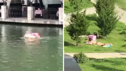 "По поводу лежания на газоне - здесь никаких нарушений нет. А насчет плавания на баллоне есть замечания, открытые водоемы сейчас содержат бактерии. Не рекомендуется купание во всех водоемах города, а в особенности в озере Сайран и БАК. Разрешается посещение парков, площадей и скверов, набережных из групп не более 3 человек, за исключением членов семьи, с соблюдением социальной дистанции и масочного режима", - напомнили в пресс-службе ДККБТУ Алматы.