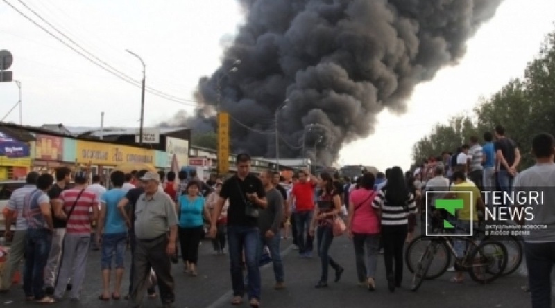 12,5 миллиона тенге требуют за ликвидацию пожара на барахолке в Алматы Пожар на рынке "Аян". ©Роза Есенкулова