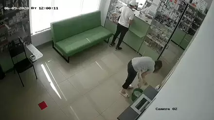 На кадрах видно, как молодой человек в кепке и медицинской маске зашел в аптеку и около кассы вынул из рюкзака предмет, похожий на пистолет. Ограбление, судя по всему, парню совершить не удалось.