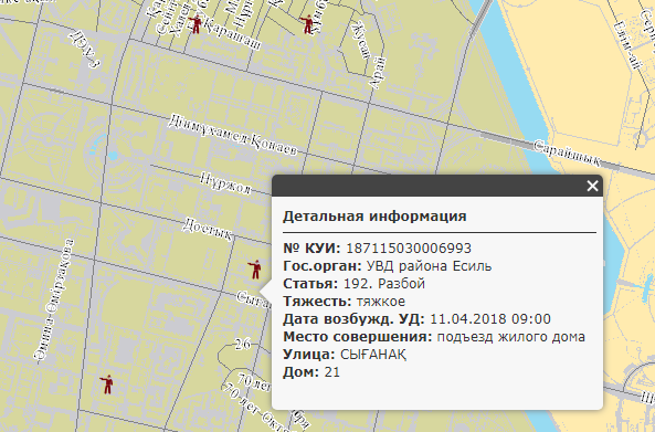 Корреспондент Tengrinews.kz изучила Карту уголовных правонарушений и узнала, где и когда в Астане происходят разбойные нападения и совершаются убийства.
