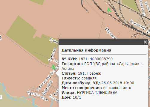 К примеру, около жилого комплекса по проспекту Сарыарка было совершено разбойное нападение в начале этого года.