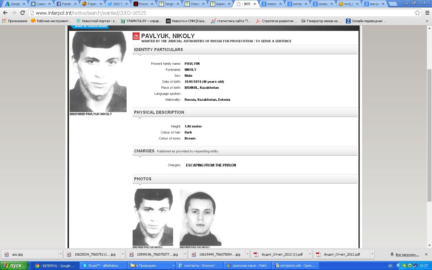 В свою очередь, 40-летний Николай Павлюк, уроженец поселка Бишкуль Северо-Казахстанской области, который на сайте Интерпола указан как гражданин РФ, Казахстана и Эстонии, разыскивается за побег из тюрьмы, который он совершил в 1999 году.  "Склонен к употреблению наркотических средств, применению насилия, может быть вооружен", - описывают подозреваемого правоохранительные органы РФ.