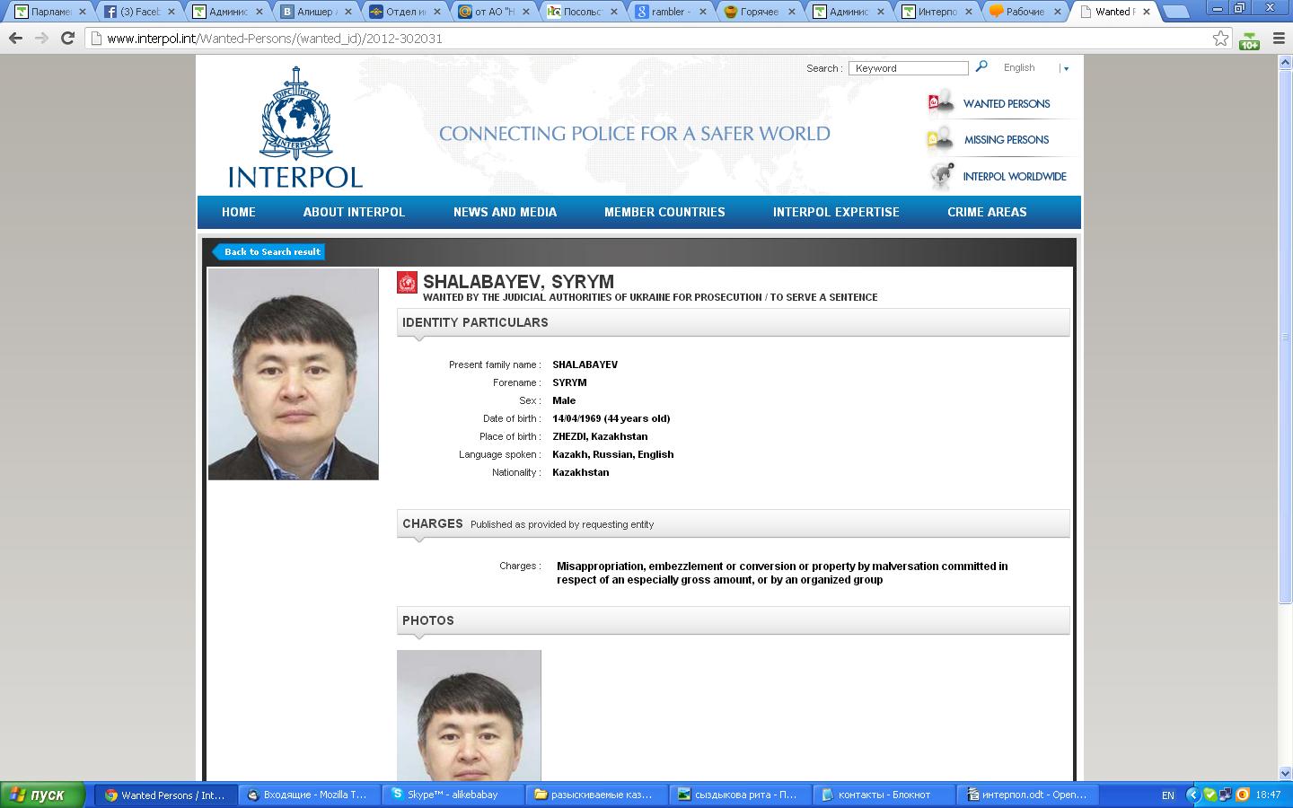Кроме Сырыма Шалабаева из списка разыскиваемых Интерполом исключили еще пятерых казахстанцев. В частности, с сайта Интерпола убрали розыскное дело в отношении бывшего бухгалтера КИМЭПа Елены Даниловой. Она была задержана в 2011 году и экстрадирована в РК в 2013-м. В июне 2014 года Медеуский районный суд в Алматы назначил ей наказание в виде пяти лет лишения свободы условно за хищение 14 миллионов тенге. Также поиск по сайту Интерпола не выдает и дело 45-летнего Дидара Наймантаева. Разыскивать казахстанца, как сообщало MSN.KG в 2010 году, правоохранительные органы Кыргызстана начали по подозрению в подготовке взрыва в ЦУМе "Айчурек" Бишкека.