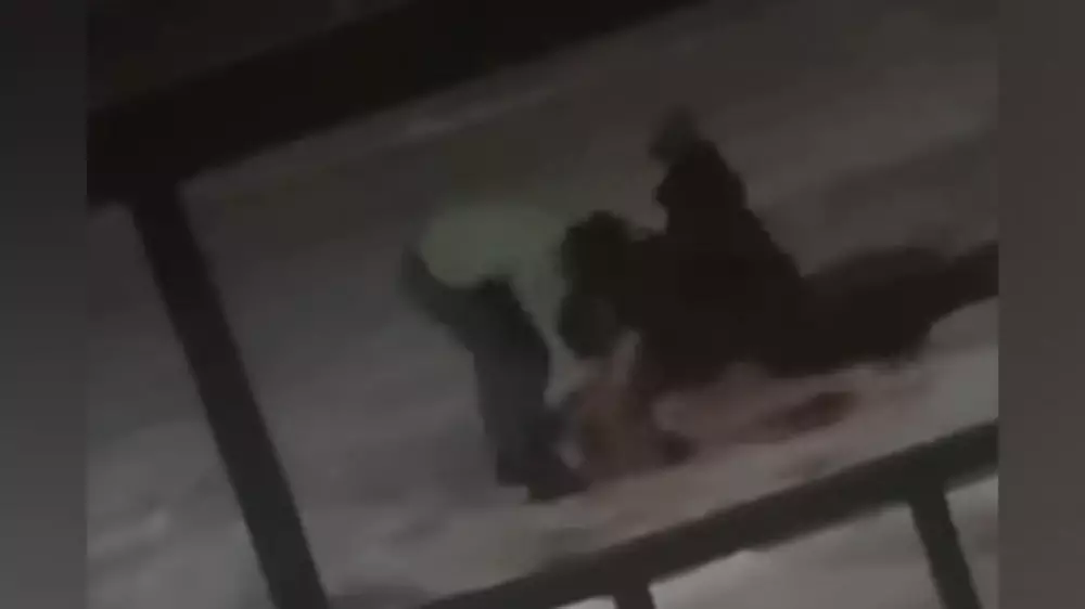 На кадрах видео видно, как двое полураздетых парней бьют и пинают по голове мужчину, лежащего на земле. Смелая женщина активно защищает мужа от хулиганов. Она оттаскивает за волосы одного из обидчиков, а затем с силой толкает второго. В следующий момент один из парней ногами прыгает на избитого мужчину и продолжает наносить ему удары, но женщине удается отбросить его в сторону.