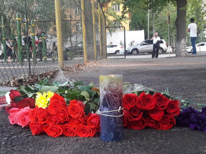К месту ранения фигуриста Дениса Тена несут цветы и свечи. Об этом сообщает корреспондент Tengrinews.kz.
