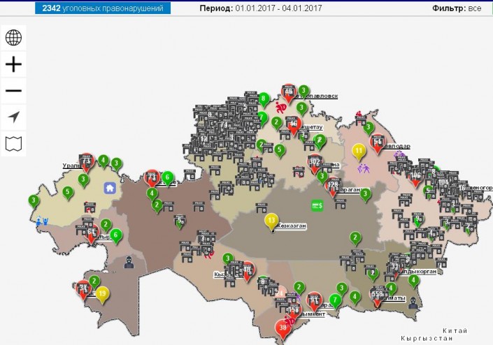 В Алматы с 1 по 4 января было зарегистрировано 445 уголовных правонарушений. В первые дни 2017 года был убит один человек, 290 краж и три изнасилования.