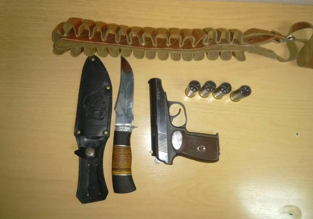 На пограничном посту "Акжол-автодорожный" (КР) - "Кордай" (РК) в ходе досмотра автомобиля казахстанца в багажнике был обнаружен газовый пистолет "ИЖ-79-7,6" и патроны к гладкоствольному оружию, а также охотничий нож.