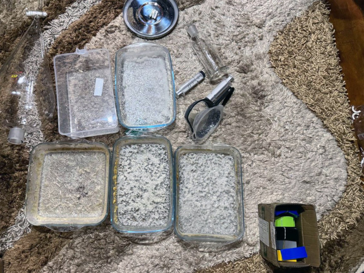 В ходе обысков изъято около 25 килограммов синтетических наркотиков, 1 тонна прекурсоров, лабораторное оборудование, а также крупная сумма денег в иностранной валюте.