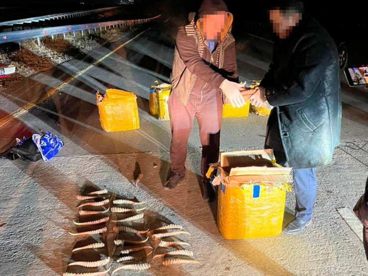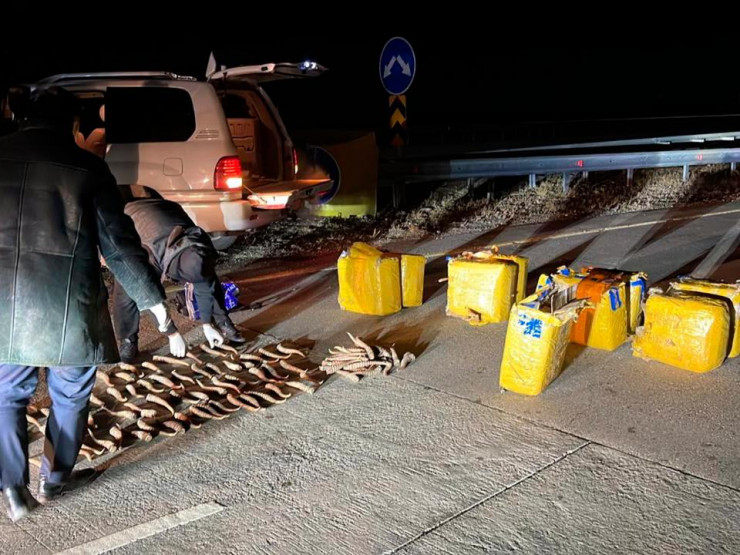"10 ноября 2022 года департаментом Пограничной службы КНБ по области Жетысу совместно с органами полиции и с привлечением сотрудников спецподразделения "Беркут" задержаны пятеро граждан Казахстана. В ходе обыска в их автомобиле обнаружены 983 рогов сайги общим весом более 100 килограммов", - говорится в сообщении.