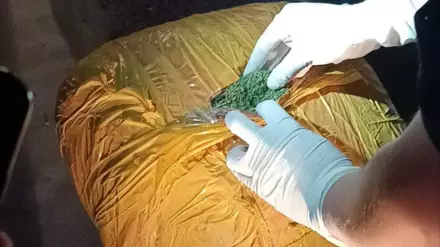 "В ходе его досмотра с использованием служебной собаки в багажном отсеке обнаружены и изъяты два баула с неизвестным растительным веществом, обмотанных скотчем. По результатам экспертизы установлено, что изъятое содержимое является наркотическим средством "марихуана, в высушенном виде" общим весом в 20 килограммов 575 граммов 120 миллиграммов", - сообщили в комитете.