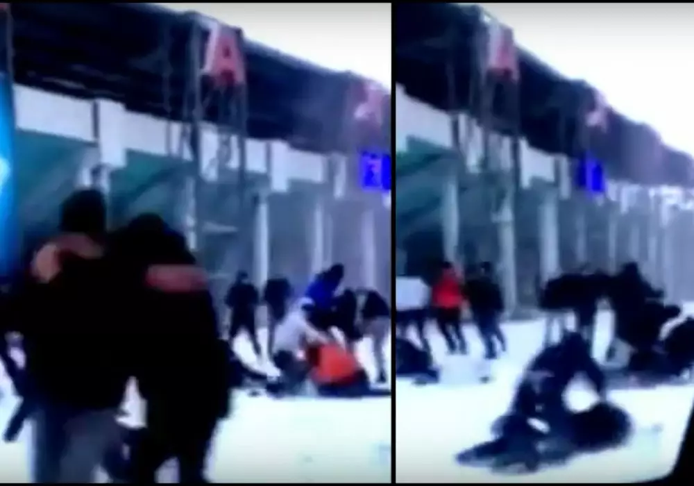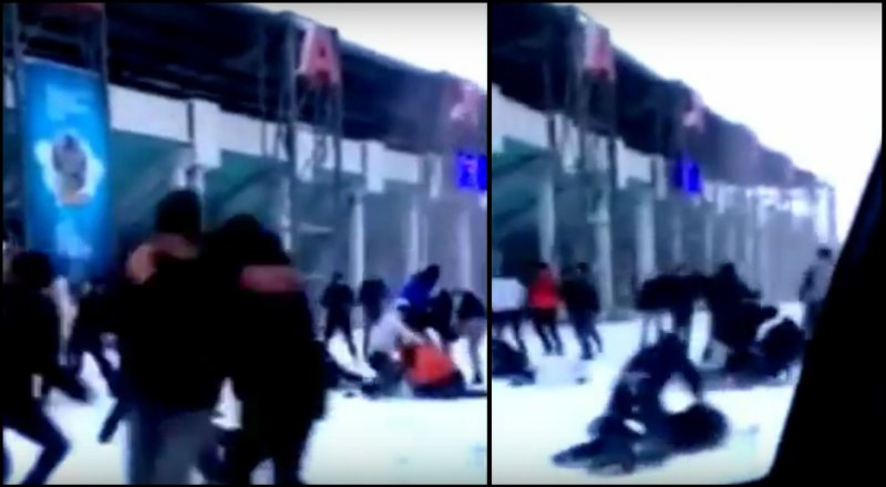 Массовая драка произошла у стадиона "Шахтер" в Караганде Кадры из видеоролика YouTube