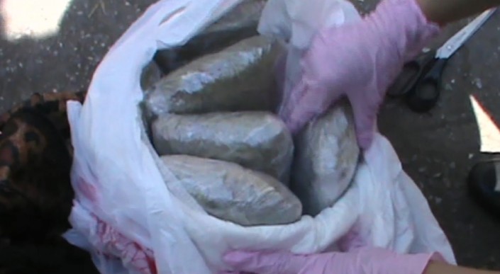 Сообщается, что в ходе досмотра автомашины с заднего пассажирского сиденья изъята спортивная сумка, в которой находилось семь свертков, обмотанных полимерным материалом и замаскированных специями "Лавровый лист". В каждом из свертков находилось порошкообразное вещество светлого цвета со специфическим запахом. Согласно акту судебно-химической экспертизы изъятое вещество является наркотическим средством - героином весом четыре килограмма 975 граммов.