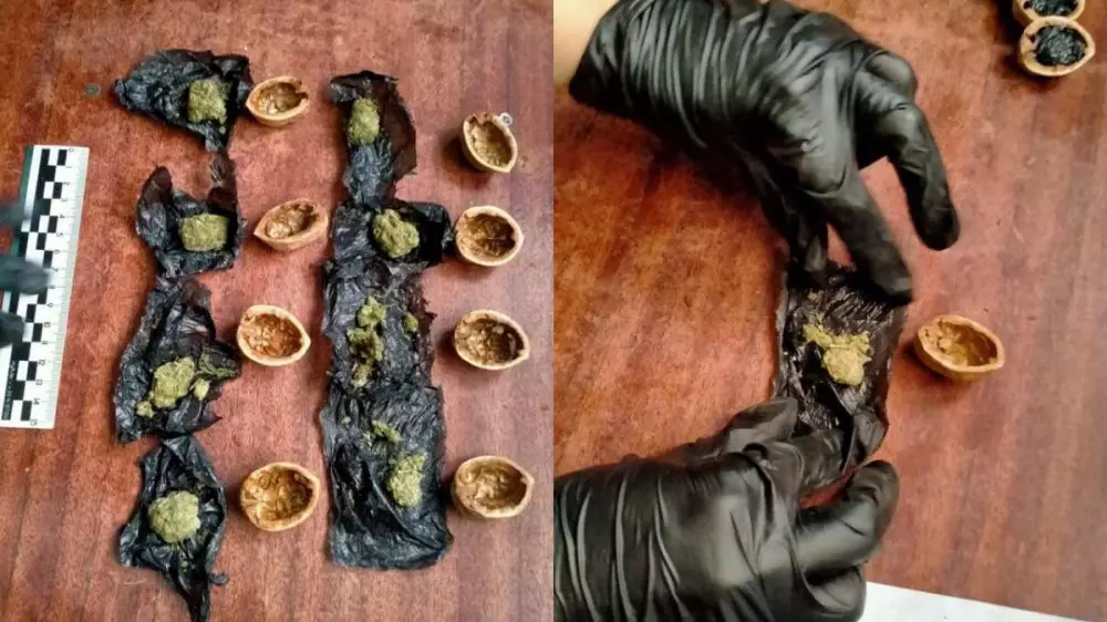 Сотрудники колонии ОВ 156/20 Департамента уголовно-исполнительной системы по ВКО предотвратили пронос запрещенных веществ на территорию учреждения. Так, алматинец пытался передать посылку, внутри которой находились два килограмма грецких орехов. При досмотре в четырех из них были обнаружены вещества неизвестного происхождения зеленого цвета со специфическим запахом.