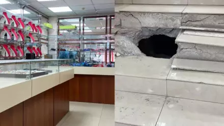 Напомним, дерзкое преступление было совершено в одном из ювелирных магазинов, расположенном возле городского рынка. На видео, распространенном в соцсетях, показано, что злоумышленники прорубили дыру на ступеньках в здании магазина.