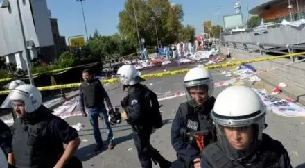 Напомним, два взрыва произошли в столице Турции перед началом митинга, который был организован профсоюзными и общественными организациями под лозунгами "Труд, мир, демократия" в знак протеста против всплеска насилия из-за турецко-курдского конфликта на юго-востоке страны. Как сообщают местные СМИ со ссылкой на источники в правоохранительных органах, взрывы были устроены террористами-смертниками в районе железнодорожного вокзала под эстакадой, где участники митинга проходили к месту его проведения. По последним данным, в результате теракта погибли 86 человек, еще 186 были ранены, из них 28 находятся в тяжелом состоянии.