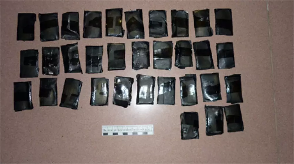 Наркополицейские узнали о том, что на территорию республики ожидается поставка наркотиков из Казахстана. В итоге оперативники задержали бывших сотрудников МВД Казахстана во время передачи наркотиков местному жителю, цыгану по национальности. Он должен был реализовать "товар" на территории Хакасии. Наркотики были найдены в багажнике автомобиля казахстанцев. Всего у преступников было изъято сто "коробков" контрабандного гашиша весом более килограмма на 21,9 тысячи долларов, а также полкилограмма марихуаны.