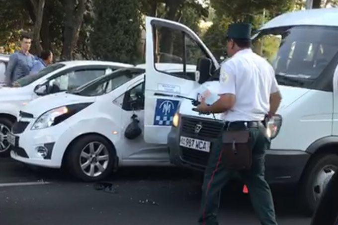Инцидент произошел 5 сентября в 17.30 по местному времени на пересечении проспекта Мустакиллик и улицы Аккурганской. На кадрах, опубликованных в соцсетях, видно, как Spark белого цвета при запрещающем сигнале светофора "расчищает" себе дорогу, тараня другие автомобили. На перекрестке автомобиль пытаются остановить несколько сотрудников органов внутренних дел, но им это не удается. Слышны звуки выстрелов - не менее восьми.