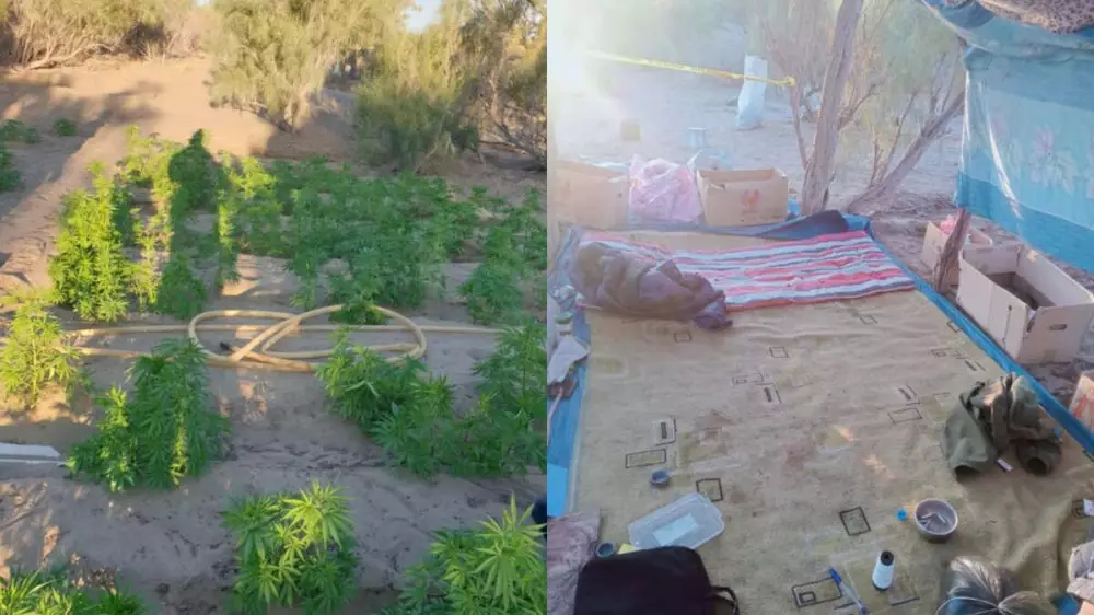 Полицейские, помимо крупного посева, нашли на месте высушенную марихуану, личные вещи подозреваемого, продукты питания, насос, палатку, водяной мотор, 20-метровый шланг, лопату, мотыгу для культивирования и выращивания конопли.