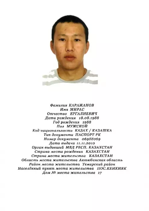 Ранее сообщалось, что установлены шестеро подозреваемых: уроженцы поселка Шубарши Темирского района Куаныш Алпамысович Алимбетов (1968 года рождения), Акылбек Маратович Мамбетов (1986 года рождения), Токтарбек Маратович Мамбетов (1984 года рождения) и Бектемир Ертаевич Уразов (1989 года рождения); уроженец поселка Кенкияк Мирас Ергалиевич Каражанов (1988 года рождения); уроженец поселка Сарыколь Айбек Айдарович Джумагазин (1988 года рождения).