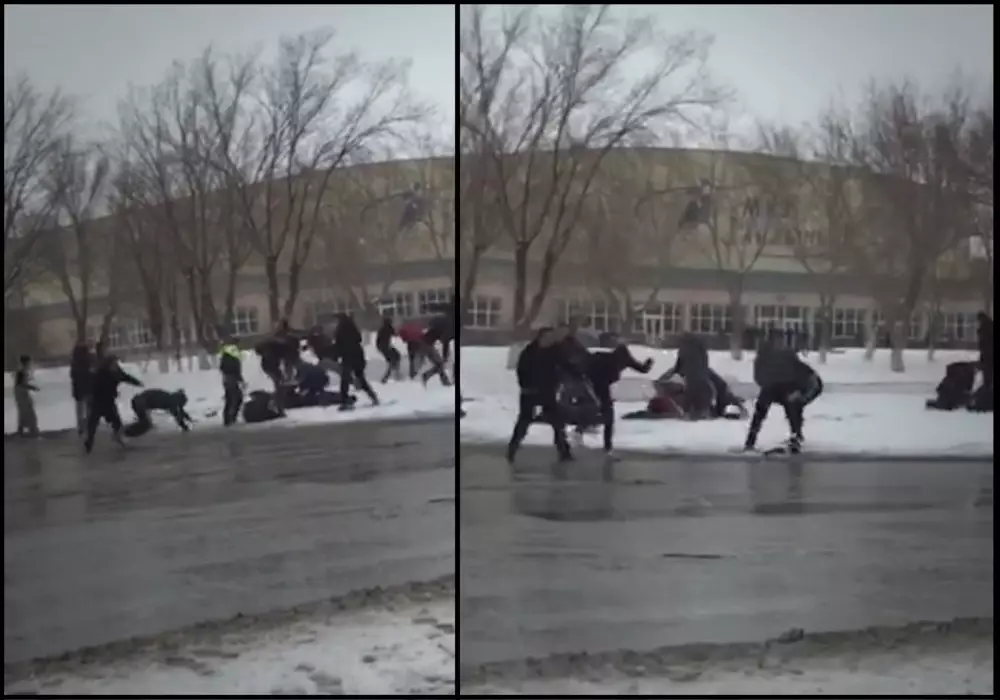 Полиция разыскивает участников массовой драки возле Ледового дворца Темиртау Кадры из видеоролика YouTube пользователя Tengrinewstv