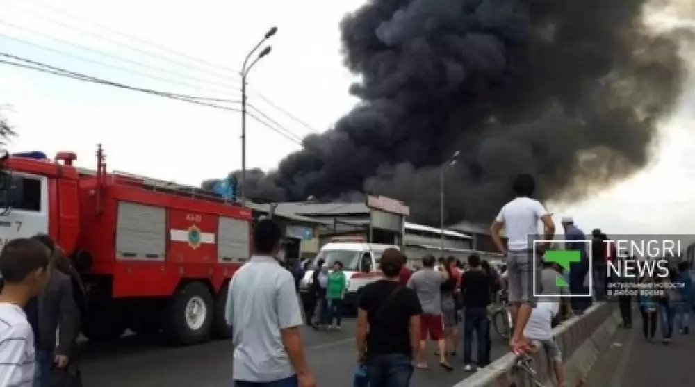 Пожар на барахолке в Алматы: Торговцы подсчитали ущерб Пожар начался на одном из рынков барахолки. Фото Роза Есенкулова©
