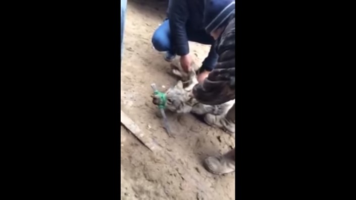 В кадре несколько неизвестных мужчин мучают хищника во дворе частного дома, чтобы потом, видимо, продолжить экзекуцию в степи. Охотники-садисты связывают волку пасть, вставив палку, чтобы он не задохнулся до конца истязаний. После животному надевают веревку на шею и пытаются заставить выполнять команды.