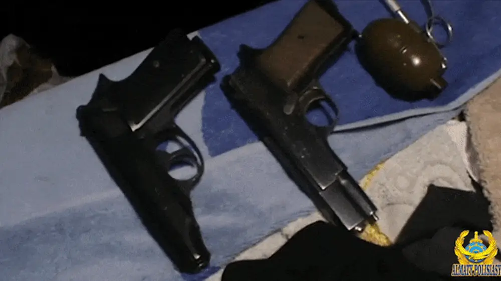 "Автомашина фигуранта – гражданина Д. 1975 года рождения - задержана на пересечении улиц Жандосова и Яссауи. При санкционированном следственным судьей обыске в транспортном средстве и лично у подозреваемого изъяты два пистолета с патронами. Еще шесть единиц оружия, в том числе "Винчестер" 12-го калибра, граната и 60 патронов, обнаружены в тайнике по месту жительства гражданина Д., в Талгарском районе Алматинской области. Оружие изъято и направлено на судебно-баллистическую экспертизу с целью установления принадлежности, происхождения, а также причастности к совершению каких-либо преступлений", - информировал начальник Управления криминальной полиции ДП Алматы Куатбек Науатов.