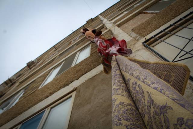 Жертвами актауского грабителя стали владельцы двух квартир, расположенных на втором этаже галерейного дома № 42 и на пятом этаже дома № 42 "А". Из последней квартиры вор выбрался по связанным семи коврам и покрывалам, которые нашел в доме хозяев.