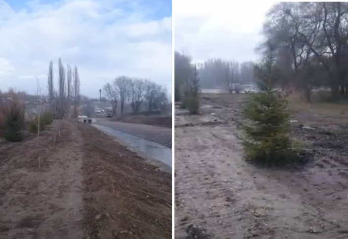 В Алматы неизвестные украли ели, посаженные по инициативе акимата вдоль реки Султан Карасу по улице Бекмаханова, сообщает корреспондент Periscope.