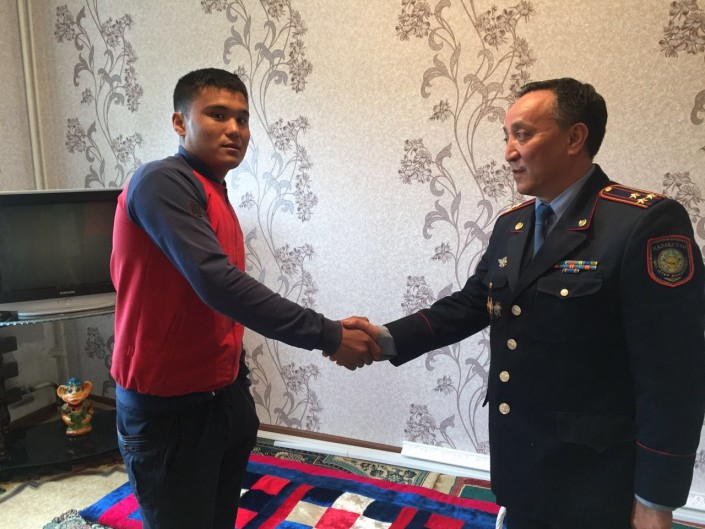 22-летний потерпевший Жандос Токтасын получил своевременную медицинскую помощь. Сейчас его жизни ничего не угрожает, он находится на домашнем лечении. Заместитель ДВД Жамбылской области навестил молодого человека дома. "Поступок молодого человека является примером для подражания. За содействие по задержанию преступников мы будем представлять его к награде перед руководством МВД РК", - заявил заместитель начальника ДВД Жамбылской области Калижан Шонгарбаев.