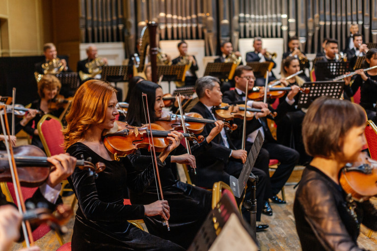 В настоящее время в составе филармонии работают известные всему миру коллективы - Государственный академический симфонический оркестр РК, Академический фольклорно-этнографический оркестр имени Нургисы Тлендиева, Государственный духовой оркестр РК, Государственная хоровая капелла имени Бахытжана Байкадамова, Государственный струнный квартет имени Газизы Жубановой, Государственный квинтет деревянных духовых инструментов.