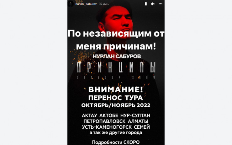 На своей странице в Instagram Нурлан Сабуров уточнил, что тур переносится "по независящим от него причинам".