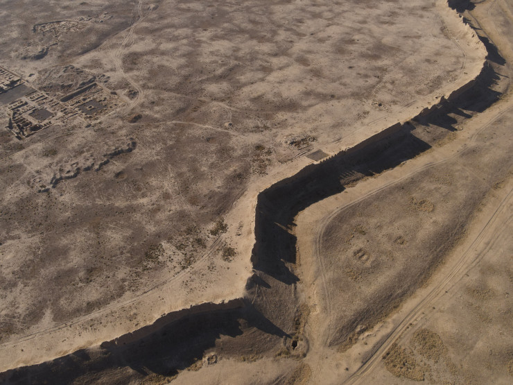 Но и за стенами города через аэроснимки можно разглядеть руины сотни домов, усадеб и ирригационных каналов. Сауран можно назвать Нью-Йорком того времени. Из горных родников и ручьев Каратау сюда за десять километров поступала чистая питьевая вода по сложной сети уникальной каризной системы подземных колодцев и водопроводов.