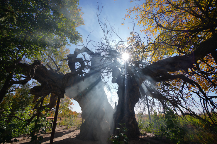 Если же выехать в западном направлении из города Туркестан, то путешественник встретит совсем другой ландшафт. Здесь царство песка, верблюжьих колючек, тугайных лесов и великой реки Сырдарья. Место популярное среди рыбаков. Ловится сазан, лещ, толстолобик, сом, змееголов. А еще здесь, у кордона Сырдарья Туркестанского парка, разводят бухарских оленей. Но увидеть их – большая удача.