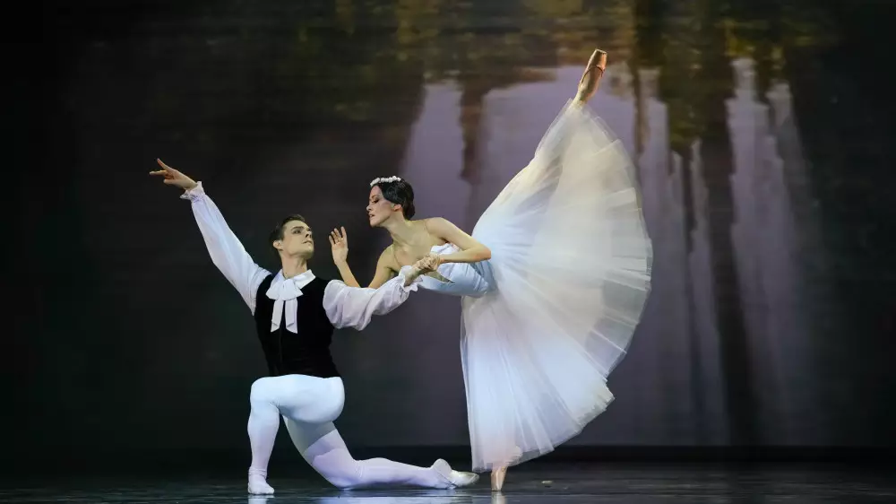 Другой премьерой вечера стал дуэт из балета "Спартак" А. Хачатуряна в хореографии Георгия Ковтуна. На сцену столичного театра фрагмент из спектакля перенес художественный руководитель "Астана Балет", заслуженный деятель РФ Нурлан Канетов. Спартака и Фригию воплотили Фархад Буриев и Айнур Абильгазина.