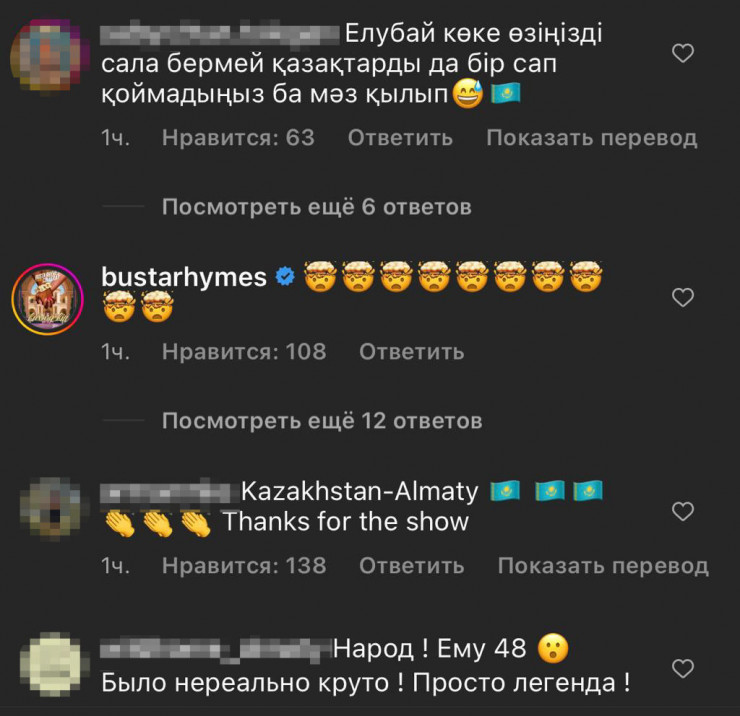 В комментариях казахстанцы заметили и другого популярного артиста - Busta Rhymes, который, судя по всему, тоже не ожидал такой подписи от коллеги по цеху.