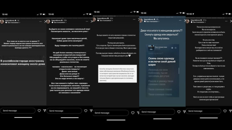 Ситуацию прокомментировала и Айжан Байзакова. Она посоветовала участникам распространившегося диалога "не обсуждать насилие, если не знают реальных статистик", а также "не мешать тем, кто уже тысячу раз доказал, что одежда никак не связана с насилием". Блогер также обратилась к исполнителю с вопросом: "Что в итоге делать женщинам? Скинуть одежду или закрыться? Мы запутались".