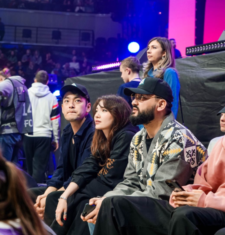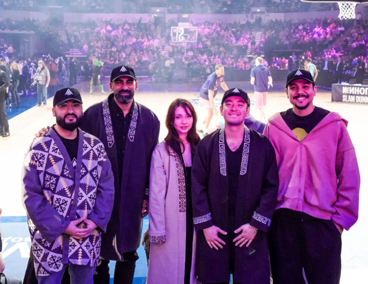 Перед камерами звезды позировали в национальных шапанах с казахским орнаментом. Айя появилась на общем снимке в светлой накидке с коричневой вышивкой, а Big Som и Аскар выбрали темные шапаны с белой вышивкой. На снимке делегация из Казахстана радостно улыбается, вероятно, из-за победы Джордана Скиппера-Брауна в конкурсе по броскам сверху.