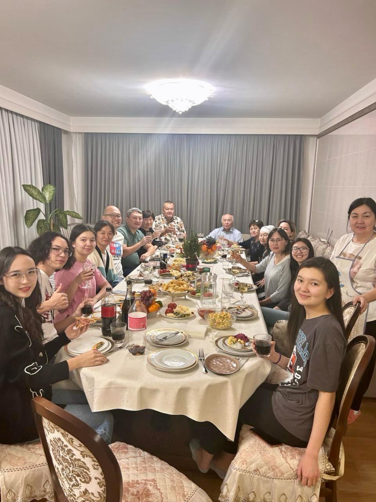 Как признается Маржан, у них очень большая и дружная семья. Каждые праздники родные собираются вместе за дастарханом, а дети и внуки готовят праздничные номера для старших гостей. По традиции сначала братья и сестры исполнили песенный номер, в этот раз это была композиция группы "Дос-Мұқасан".