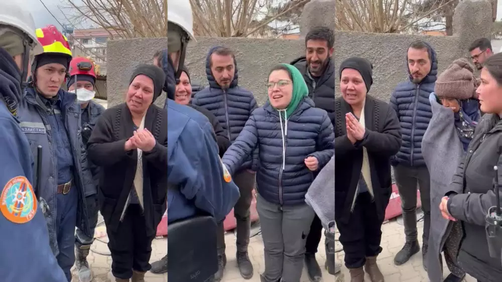 По информации МЧС Казахстана, видео было снято на днях в турецком городе Нурдагы. Именно там казахстанские спасатели в ходе поисковых работ вытащили из-под завалов троих живых людей - двух женщин и мужчину.