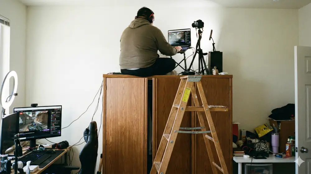 Деньги решают: казахстанский стример уже второй день живёт на шкафу Изображение сгенерировано при помощи нейросети