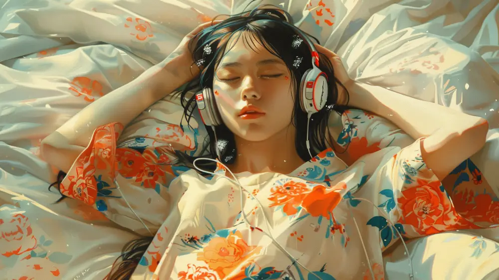 Девушка частично потеряла слух, слушая музыку перед сном Изображение сгенерировано при помощи нейросети Midjourney
