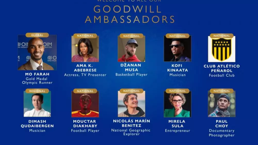 Международная организация по миграции объявила о назначении девяти послов доброй воли – артистов, художников, спортивных деятелей и других известных людей, которые присоединятся к первому глобальному послу МОМ, олимпийскому чемпиону сэру Мо Фараху, сообщила пресс-служба организации, рассказывает Tengri Life.