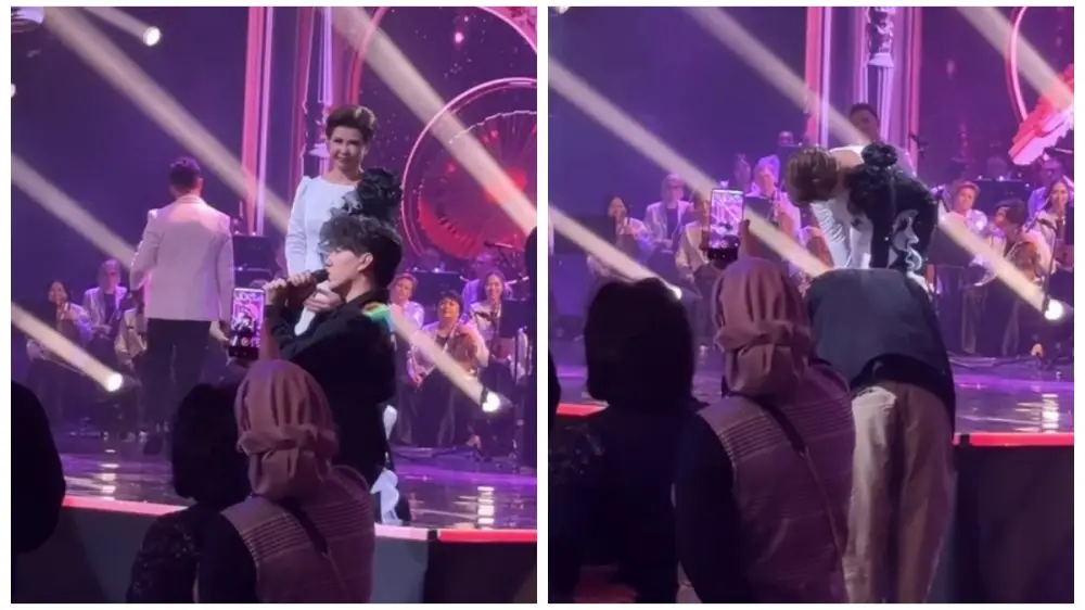 Артист произнес теплую речь, в которой назвал Рымбаеву примером для всех поколений артистов и учителем. Димаш поклонился певице в знак уважения и благодарности, высказав ей самые лучшие пожелания.