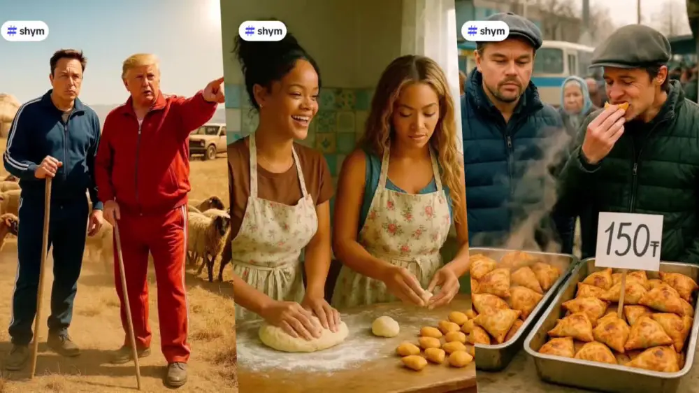 В вирусных роликах на фоне пейзажей аула и гор можно увидеть Рианну и Бейонсе, которые лепят баурсаки, Илона Маска и Дональда Трампа, пасущих скот, 50 Cent и Snoop Dogg, уплетающих бешбармак в юрте, а Джей Ло ловко доит корову. Видео уже успели собрать сотни тысяч просмотров и вызвать волну шуток в комментариях.