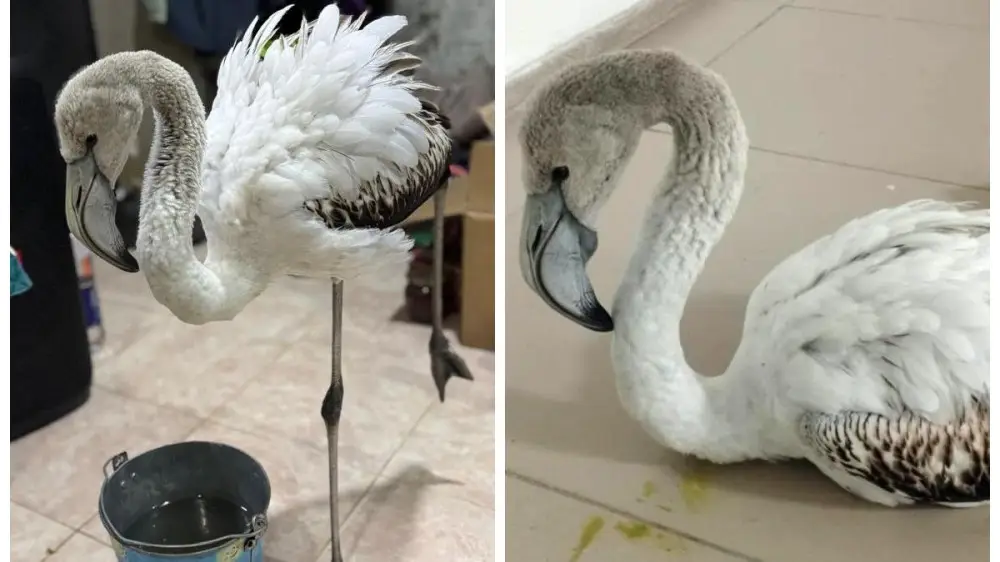 "Фламинго стоит - это уже хороший знак. Заинтересовался водой, попил. Мне объяснили, как нужно его кормить. Я сейчас делаю смесь из того, что под рукой есть на данный момент. Пока сказали, что нужно наблюдать, как он себя чувствует, как ест. Если все будет хорошо, его заберут в Алматы", - поделилась Виктория.