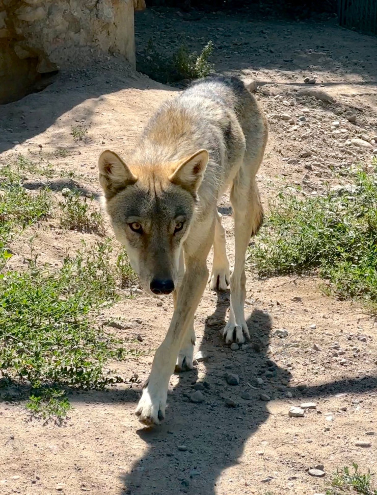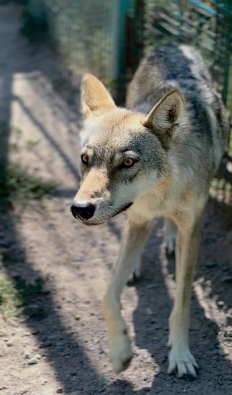 В зоопарке напомнили, что Дос относится к степному, или пустынному, подвиду волка, который отличается более худощавым и мелким телосложением, весит около 25-30 килограммов.