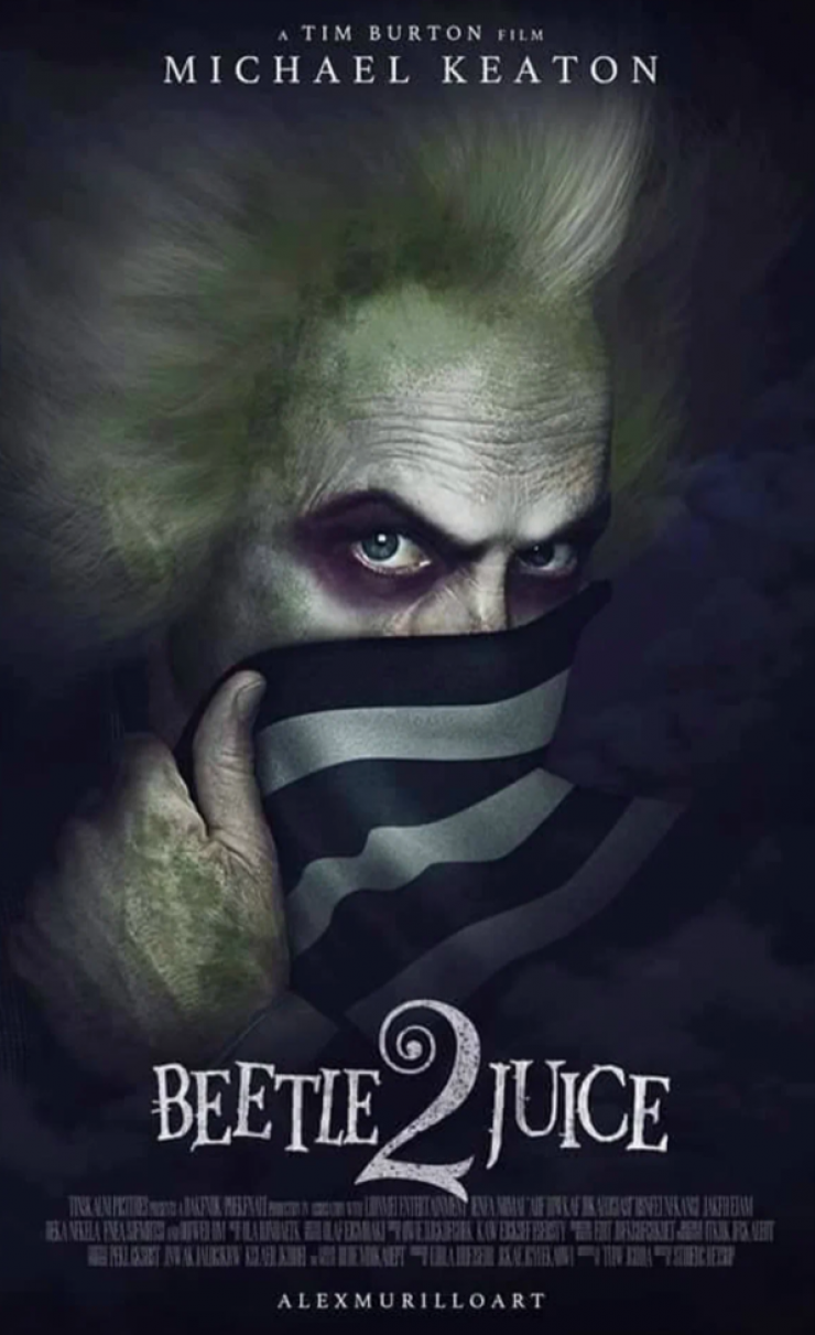 Спустя 36 лет на экраны выходит гротескная комедия Тима Бертона. Майкл Китон вновь сыграл главного героя, к своим ролям вернулись и Вайнона Райдер с Кэтрин О’Хара. Также в фильме снялись Моника Беллуччи, Уиллем Дефо и Дженна Ортега.