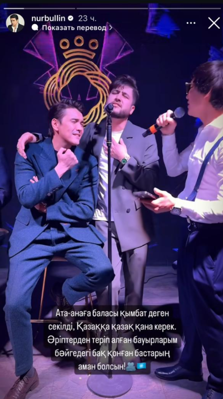 А вот певец Нурболат Абдуллин опубликовал в stories видеоролик, в котором они вместе с Нуртасом поют песню. Скорее всего, видеоролик им был также опубликован в поддержку артиста.