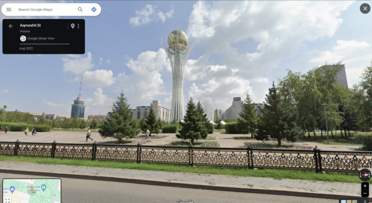 Street View позволяет погулять на территории монумента "Байтерек" , футуристического музея "Нур Алем" в Астане, посетить Дворец культуры металлургов в Темиртау или Центральную мечеть Актобе.